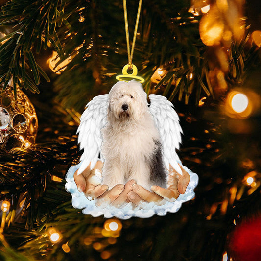 Old English Sheepdog In The Hands Of God Car Hanging Ornament